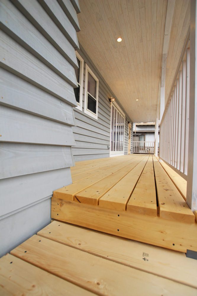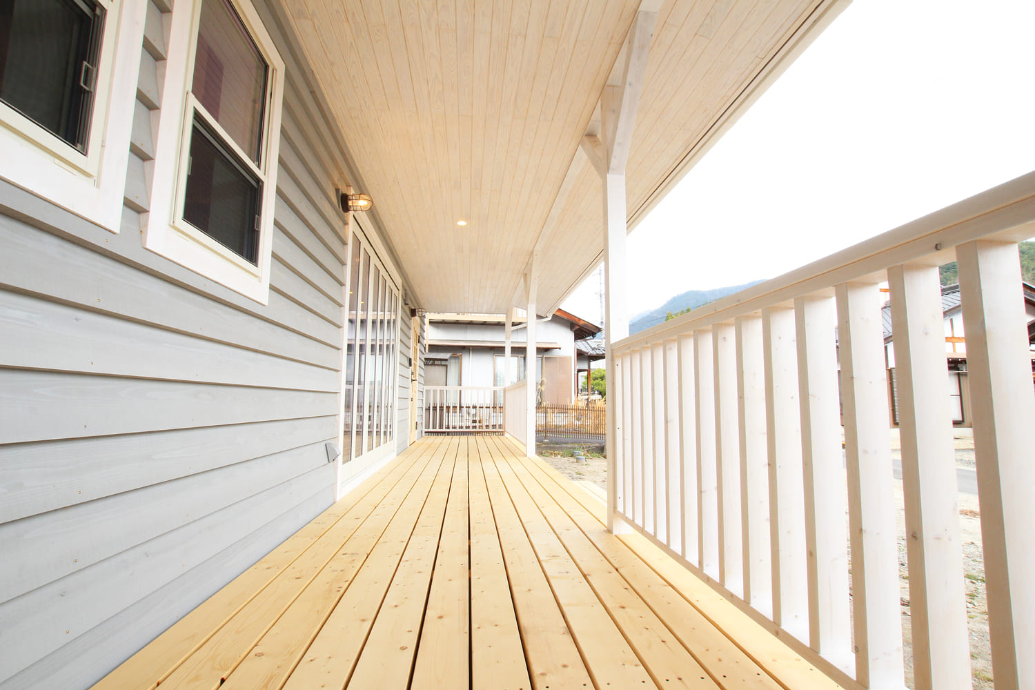 庭へと続くウッドデッキは、内と外を緩やかにつなぎ、自然を身近に感じる暮らしを予感させます。