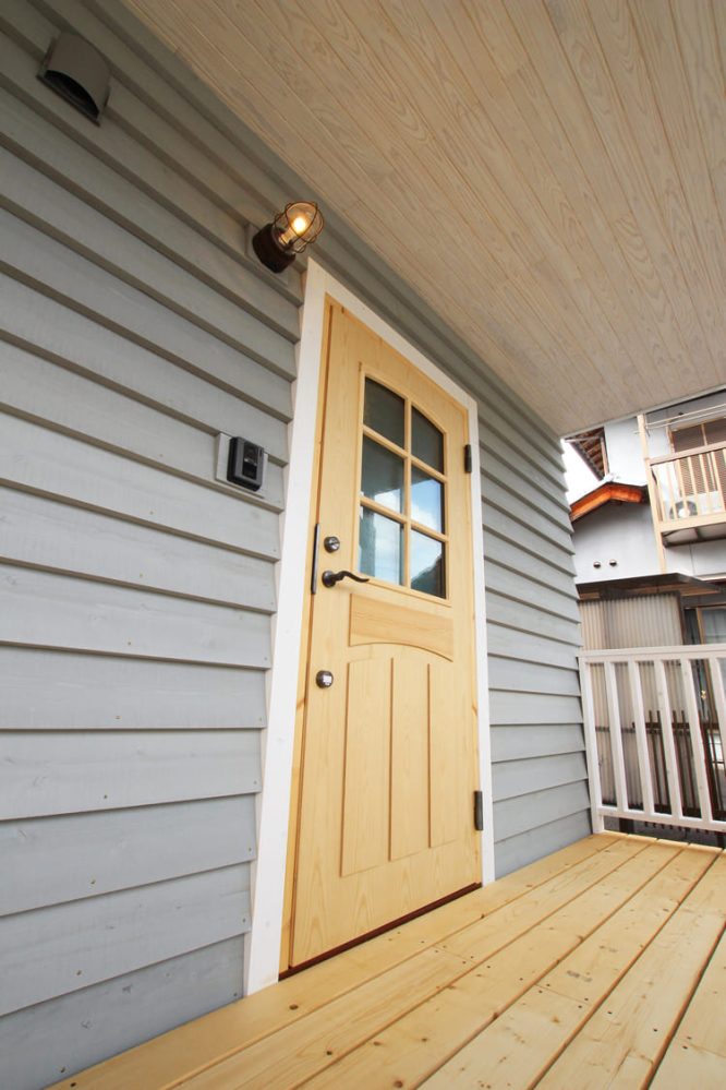 シャープな印象の中にも、木の温もりを感じさせる軒天や玄関ドアが、訪れる人を優しく迎え入れます。