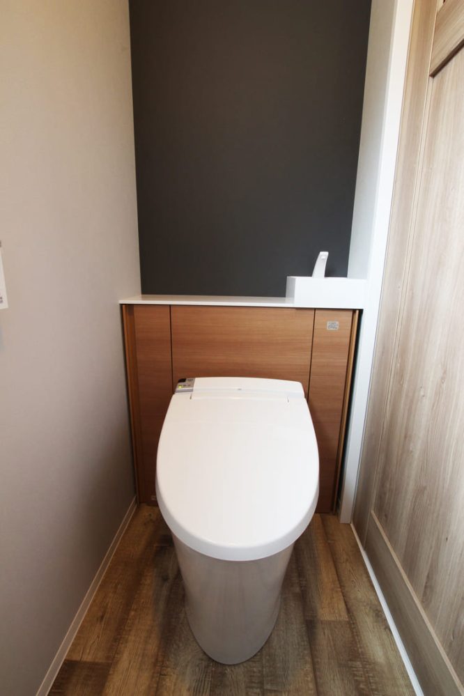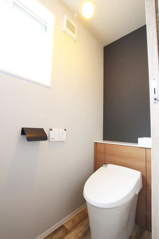 限られたスペースながらも、デザイン性と快適性を追求したトイレ空間。
