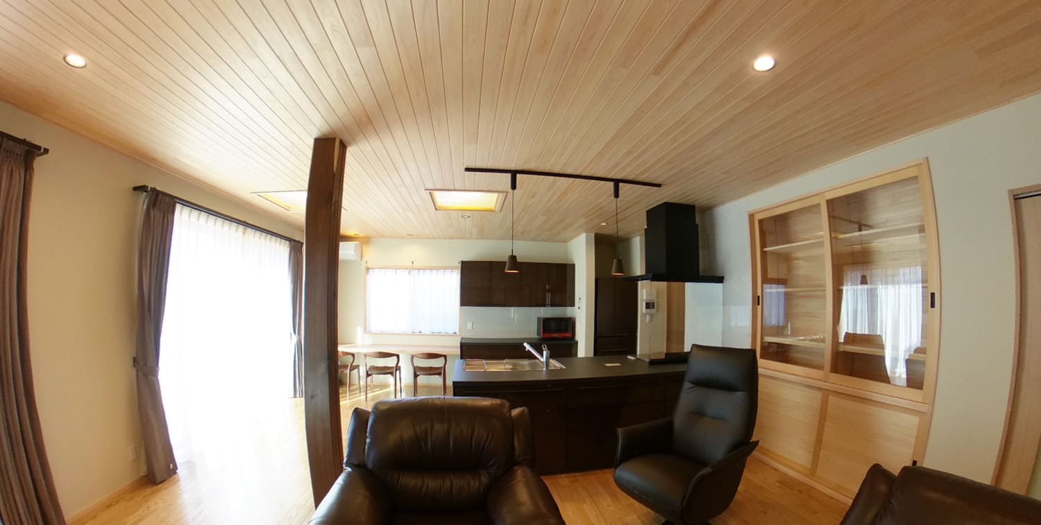 一歩足を踏み入れると、まず天井いっぱいに広がる無垢材の優しい表情に心が和みます。