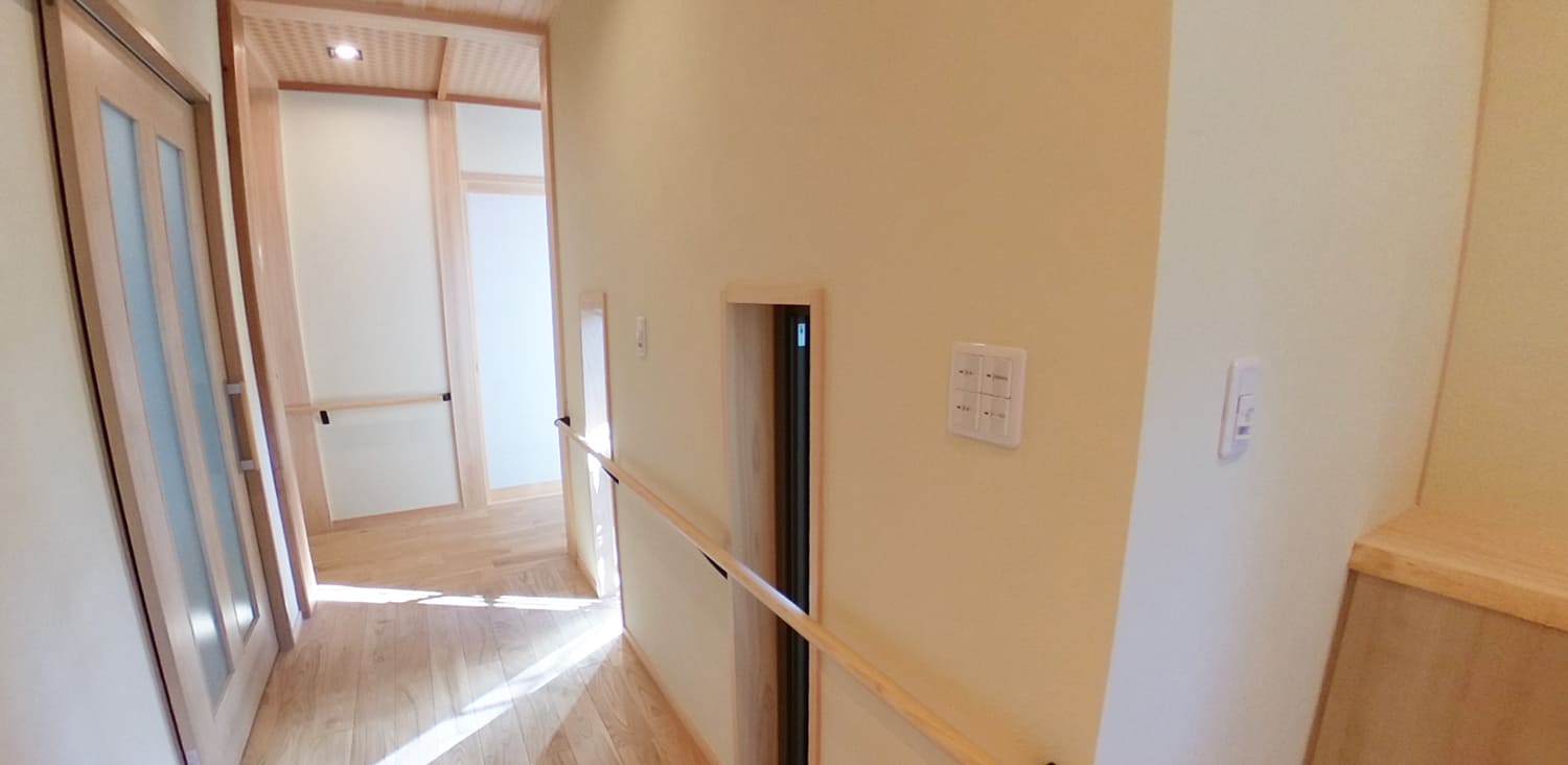 この廊下は、単に部屋と部屋を結ぶ動線であるだけでなく、家族の笑顔や会話が通り過ぎる、温かなコミュニケーションの道でもあります。