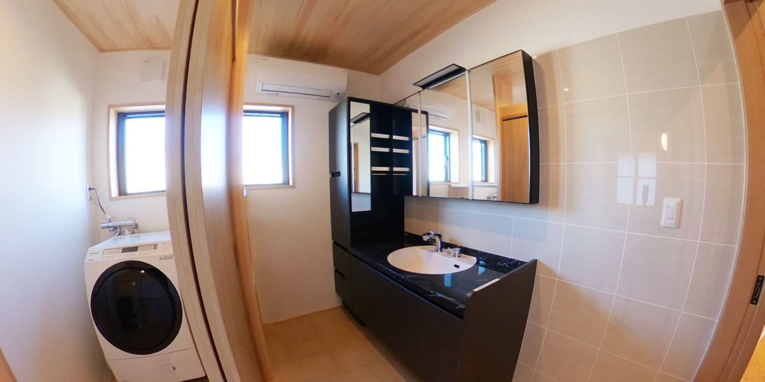 そんな想いを叶える洗面所が、ここにあります。まるで高級ホテルのパウダールームのような洗練された空間は、朝の身支度を特別な時間へと変えてくれるでしょう。